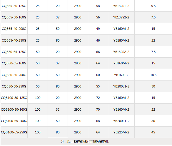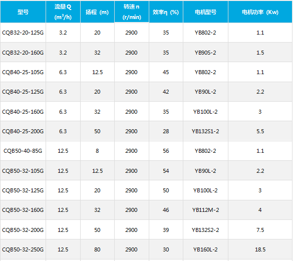 CQB-G高溫磁力泵選型產品技術參數